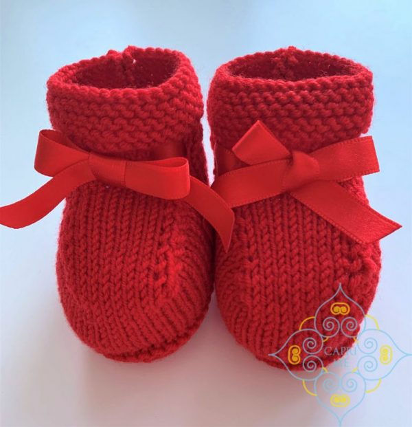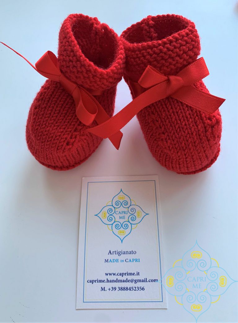 Tag: capri, fatto a mano, lana, neonata, neonato, pura lana, rosso, Scarpette